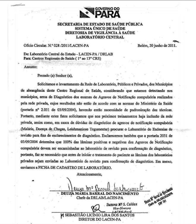 a qualidade total deste diagnóstico parasitoscópico, a Div. Vig. Epid. da SESPA